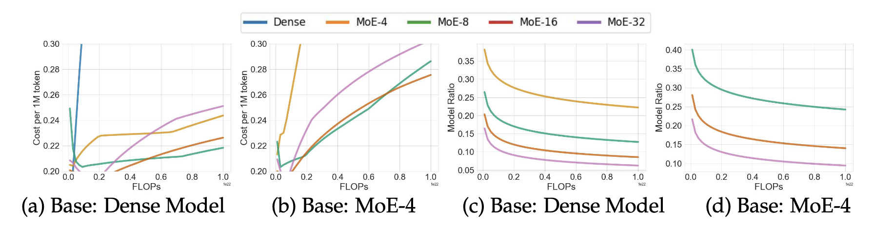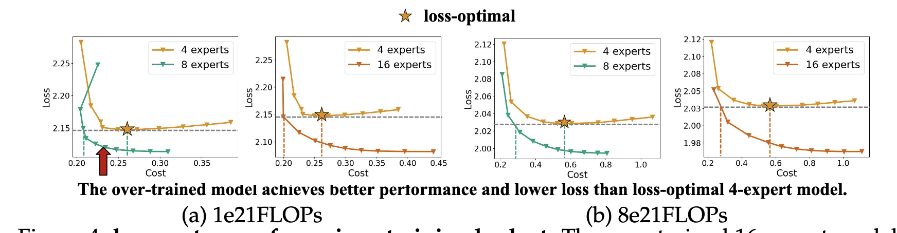 - smaller bigger expert (4/8) is the most serving efficient, but costs more to train to the same loss