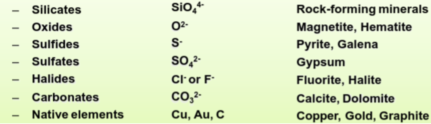 Most important minerals: silicates. “Rock forming minerals.” 95% of continental crust. \(SiO_{4}^{4-}\) anion. They are bonded together by cations. How they bond determines structure.